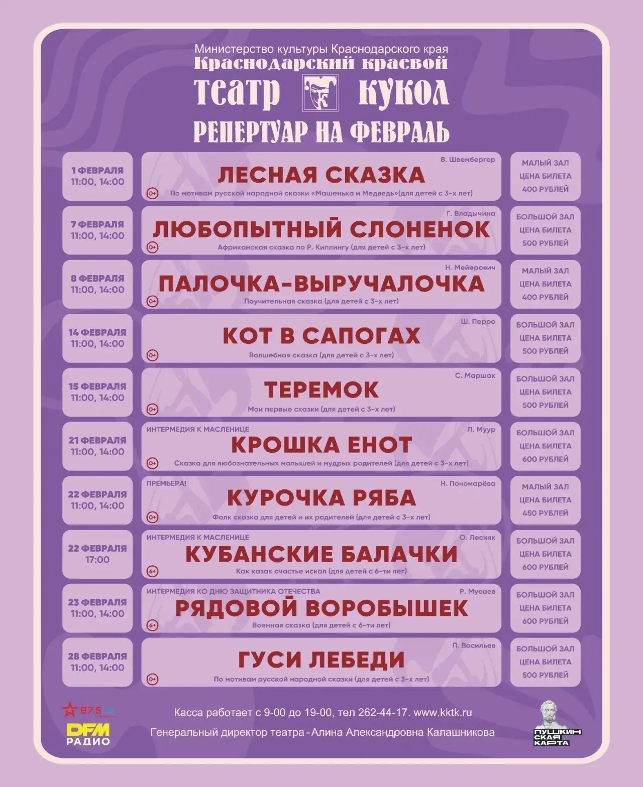 Дорогие зрители! Афиша ФЕВРАЛЯ: