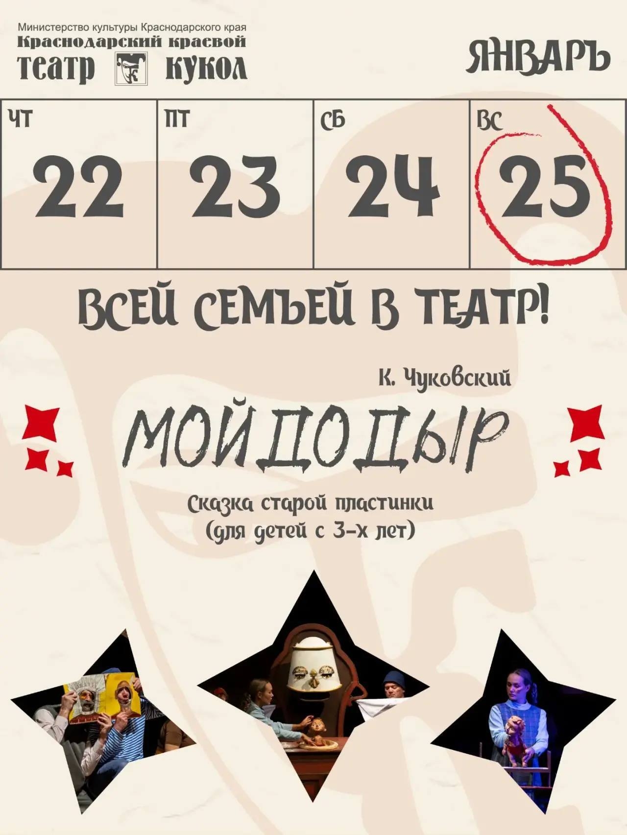 Приходите всей семьёй посмотреть спектакль «Мойдодыр»