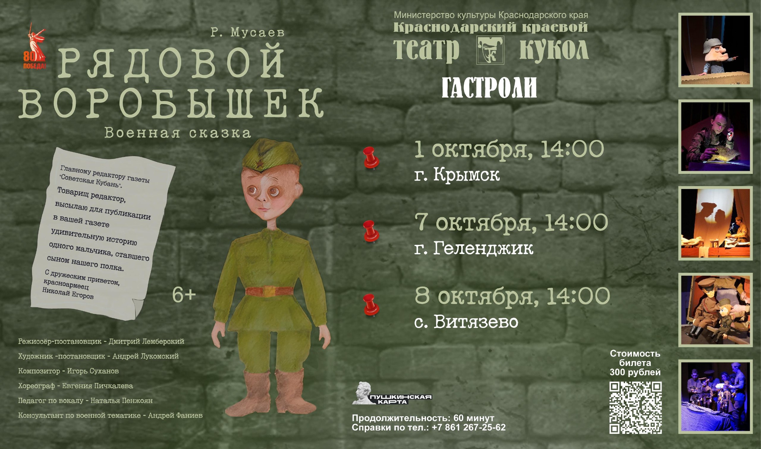Рассказываем, куда в ближайшее время отправляемся на гастроли со спектаклем «Рядовой Воробышек» (6+)