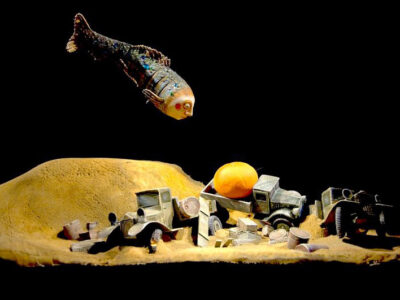 Дом разрушен. Шкаф – единственное прибежище Вали в разбомбленном доме. Но когда рядом те, кто тебя любит и защищает, пусть даже в иллюзиях и воображении, твой защитник – домовой, разгоняющий страхи, ты выживешь и будешь жить с благодарностью к тем, кто выстоял, создал дом без войны. Дом без войны, мир без войны, детство должно оставаться детством, ребёнок имеет право на счастье жить в мире – вот основная идея авторов спектакля.