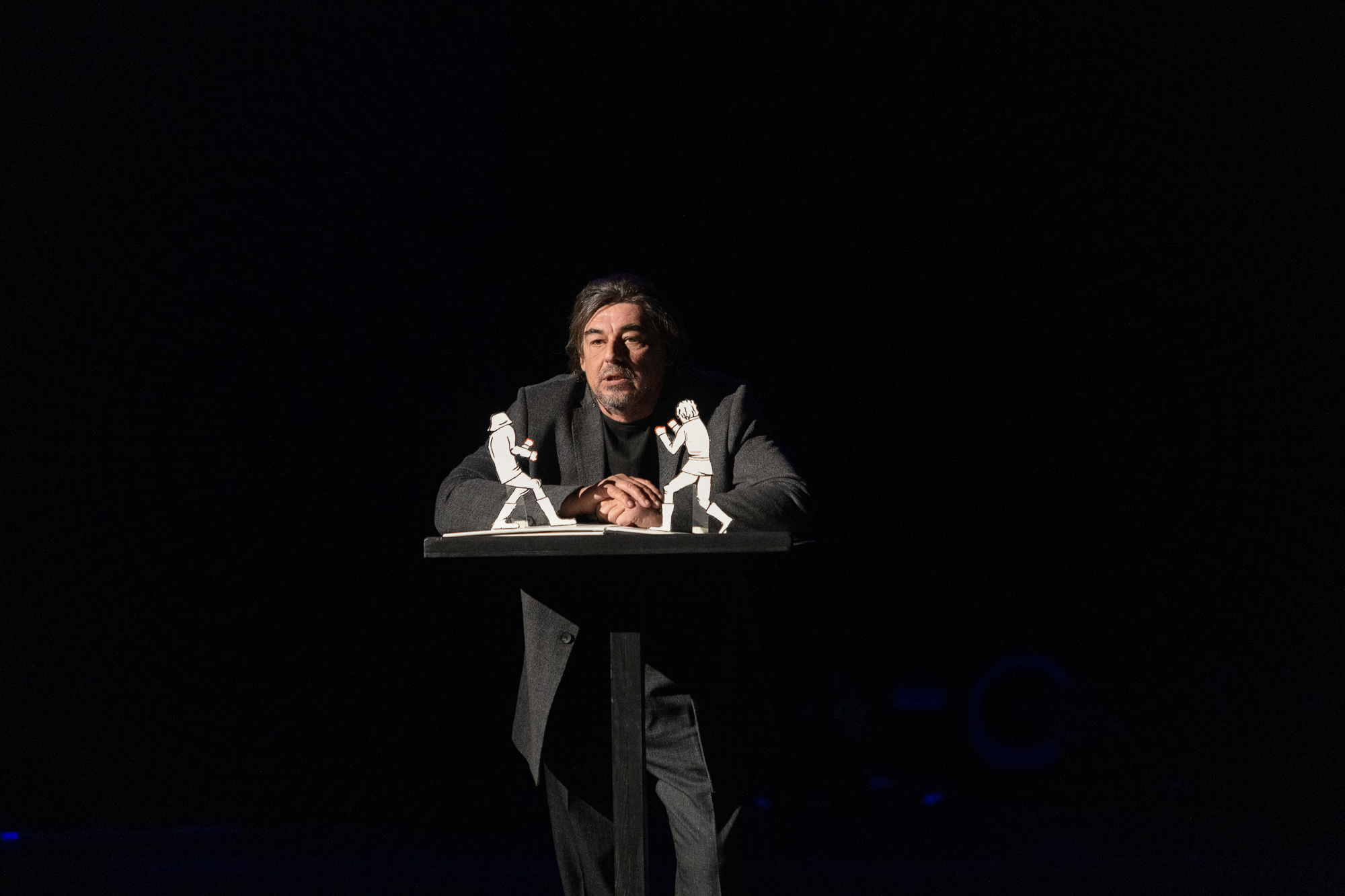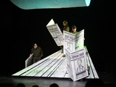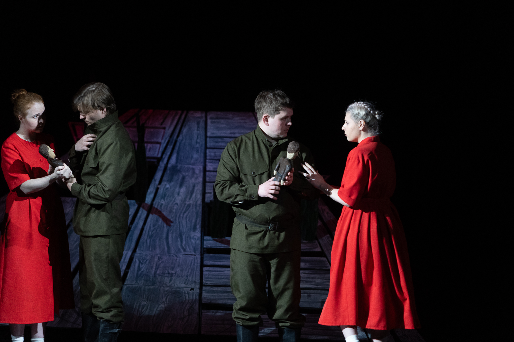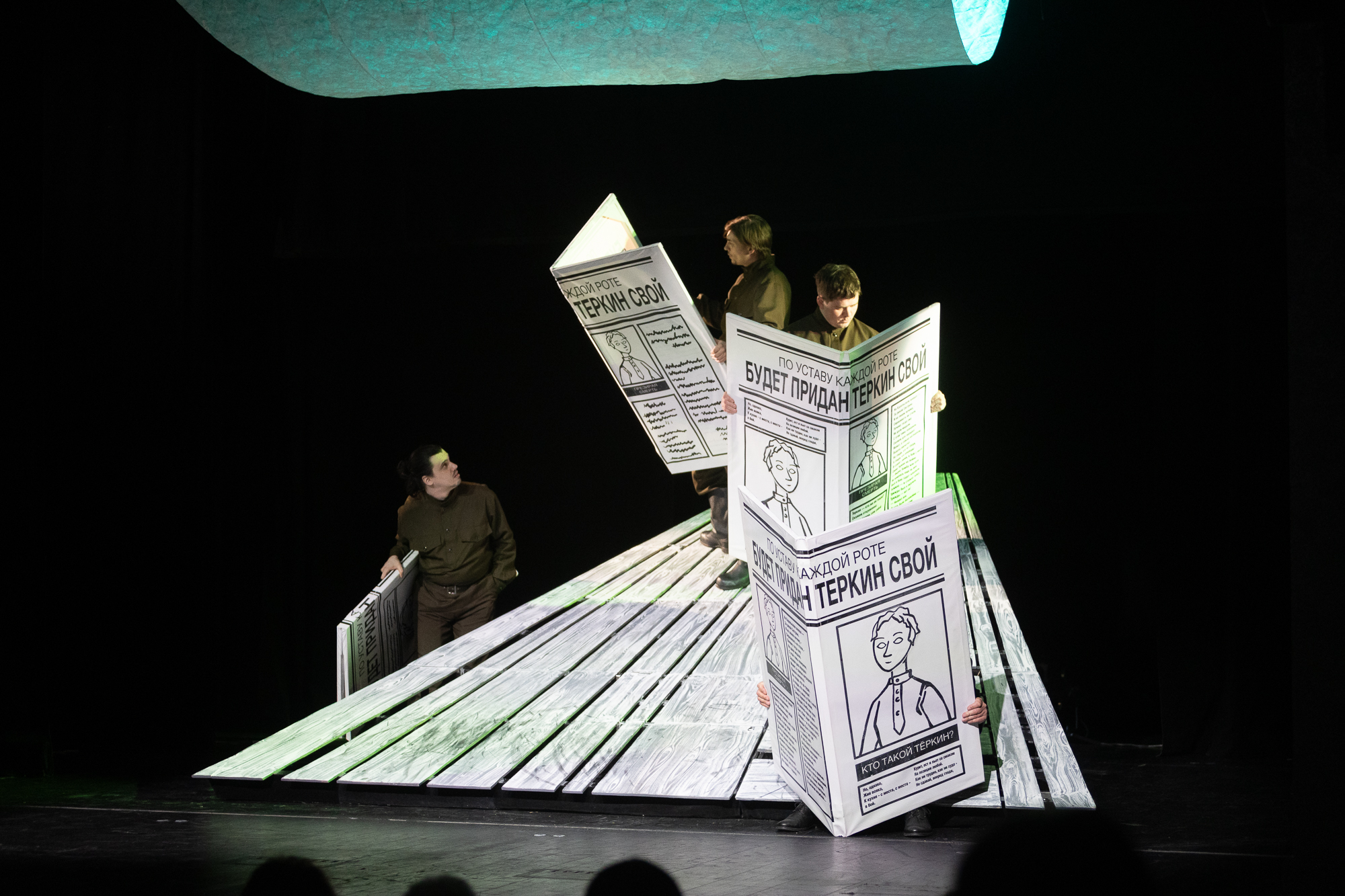 Спектакль основывается на знаковом произведении для Твардовского – поэмы «Василий Тёркин», истории о том, как сохранить в себе Человека, несмотря на все ужасы, происходящие вокруг, как не утратить силу духа, надежду и достоинство, как оставаться ЖИВЫМ. Важная особенность нашей работы — к темам автора совершенно неожиданно, органично примкнула «женская» тема — тема вдов и матерей, тех кто ждет возвращения своих героев.