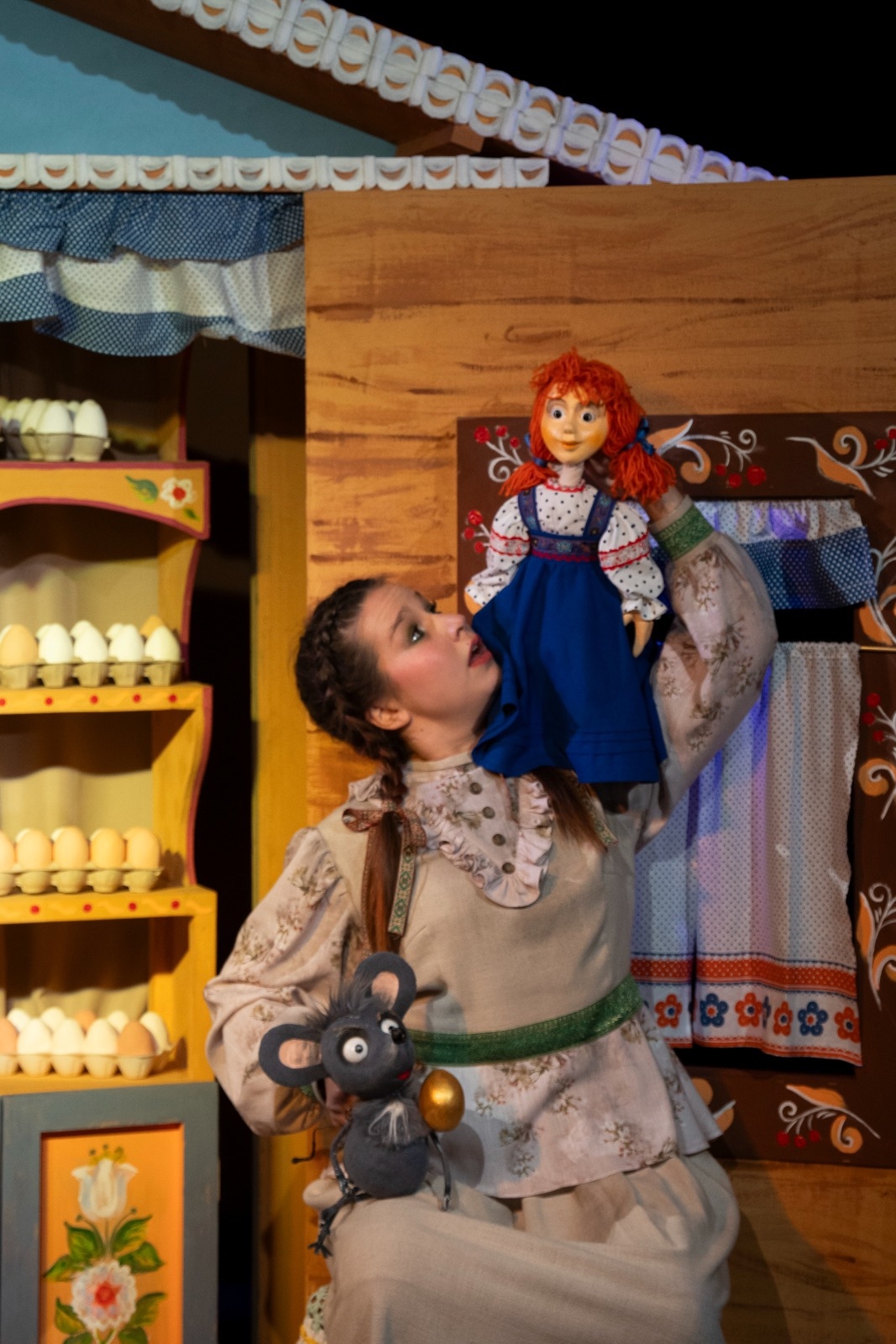 Спектакль перенесет вас в удивительно яркий мир русского народного творчества с его лубочностью и живописностью. Неповторимый и задорный мир фолк сказки «Курочка Ряба» создаст атмосферу для теплого семейного просмотра.